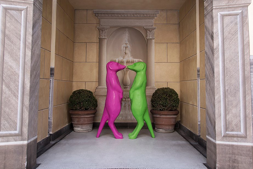 Lo zoo divertente e colorato di Cracking Art, che sarà posizionato per la prima volta in un hotel 5 stelle a Milano, sarà visibile nella hall, nel giardino esterno e nel balcone che affaccia sull’ingresso e rimarrà esposto fino al 31 Maggio 2016.